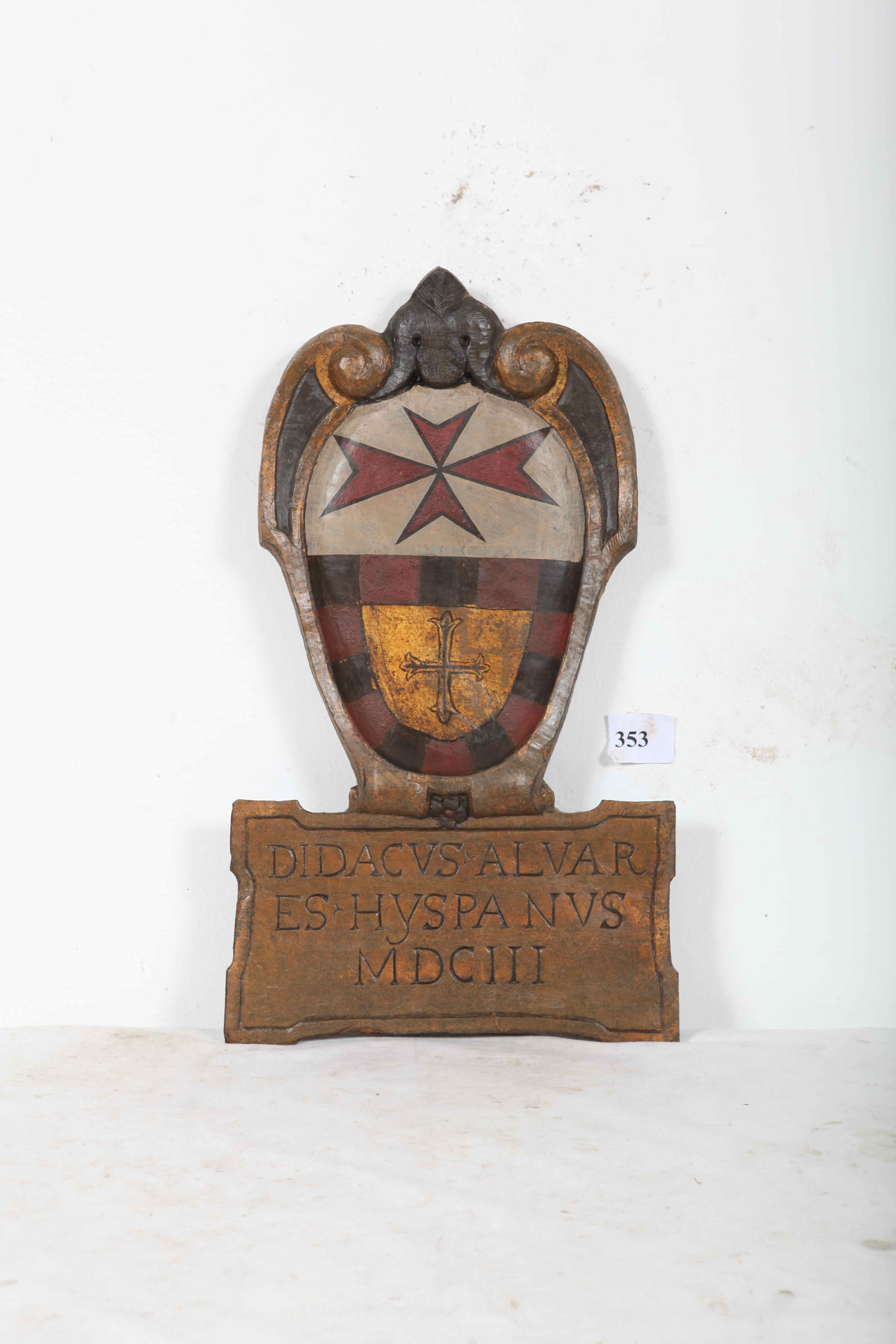 Pietra; Mista/ biacca a olio (fondo scudo) e tempera grassa (decorazione) e oro a conchiglia