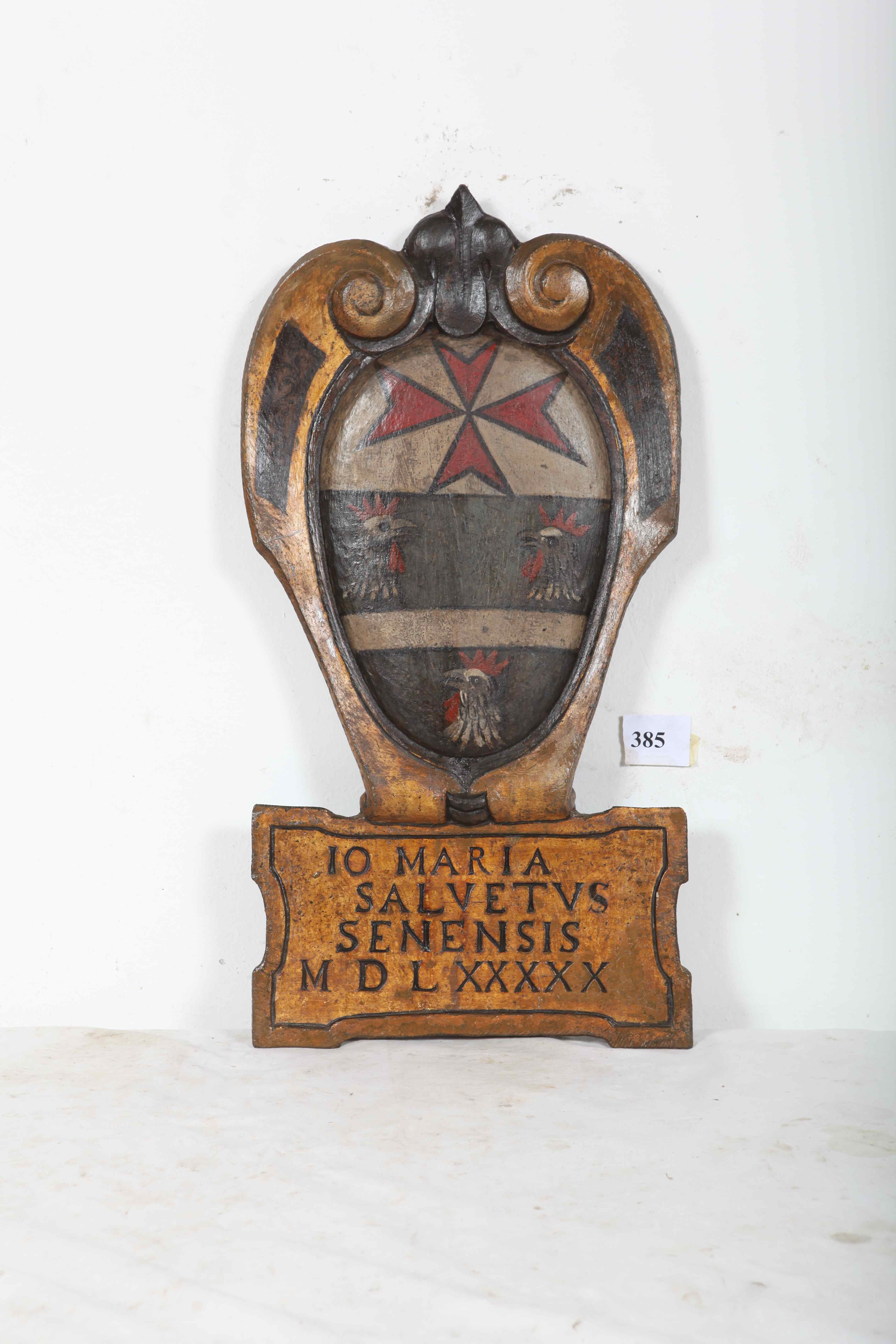 Pietra; Mista/ biacca a olio (fondo scudo) e tempera grassa (decorazione) e oro a conchiglia