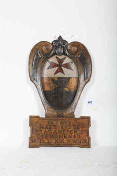 Lo stemma e quanto blasonato tra parentesi corrispondono allo scudo conservato nelle relative Provanze