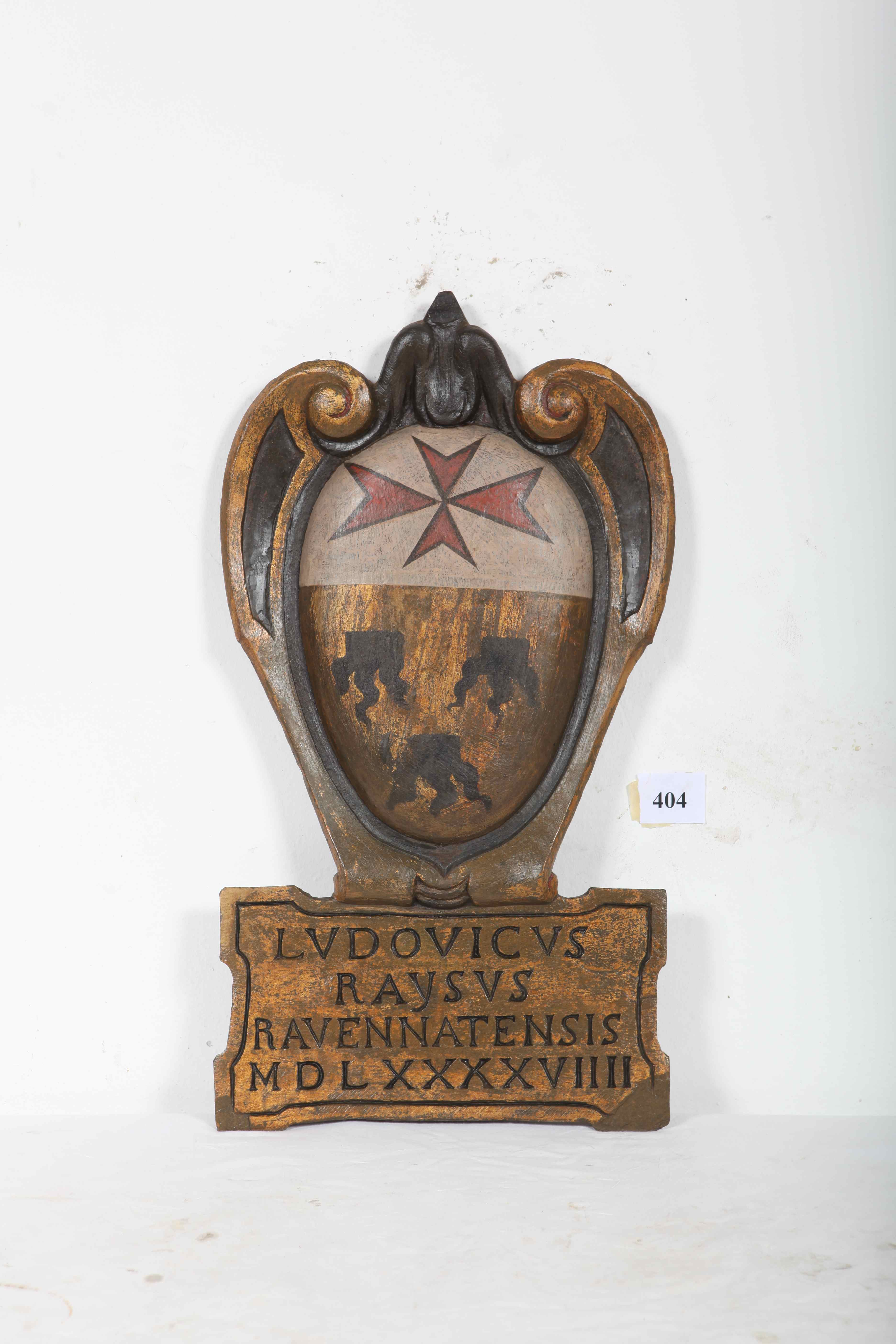Pietra; Mista/ biacca a olio (fondo scudo) e tempera grassa (decorazione) e oro a conchiglia
